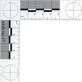 - Las divisiones de 1cm son alternadas con barras blancas y negras para permitir mediciones incluso en fotografías sobreexpuestas o subexpuestas.