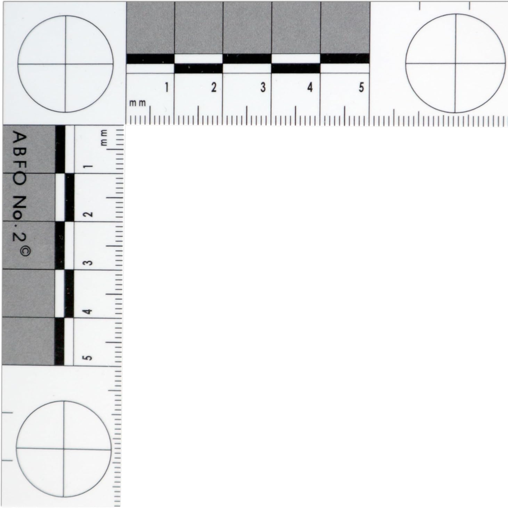 - Medición de Marcas de Mordedura: Su diseño tipo ABFO la hace la escala estándar para la medición de mordeduras.