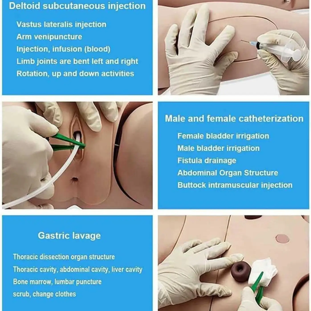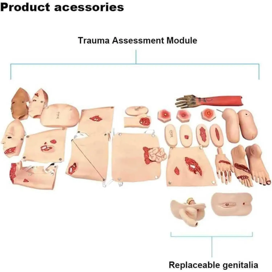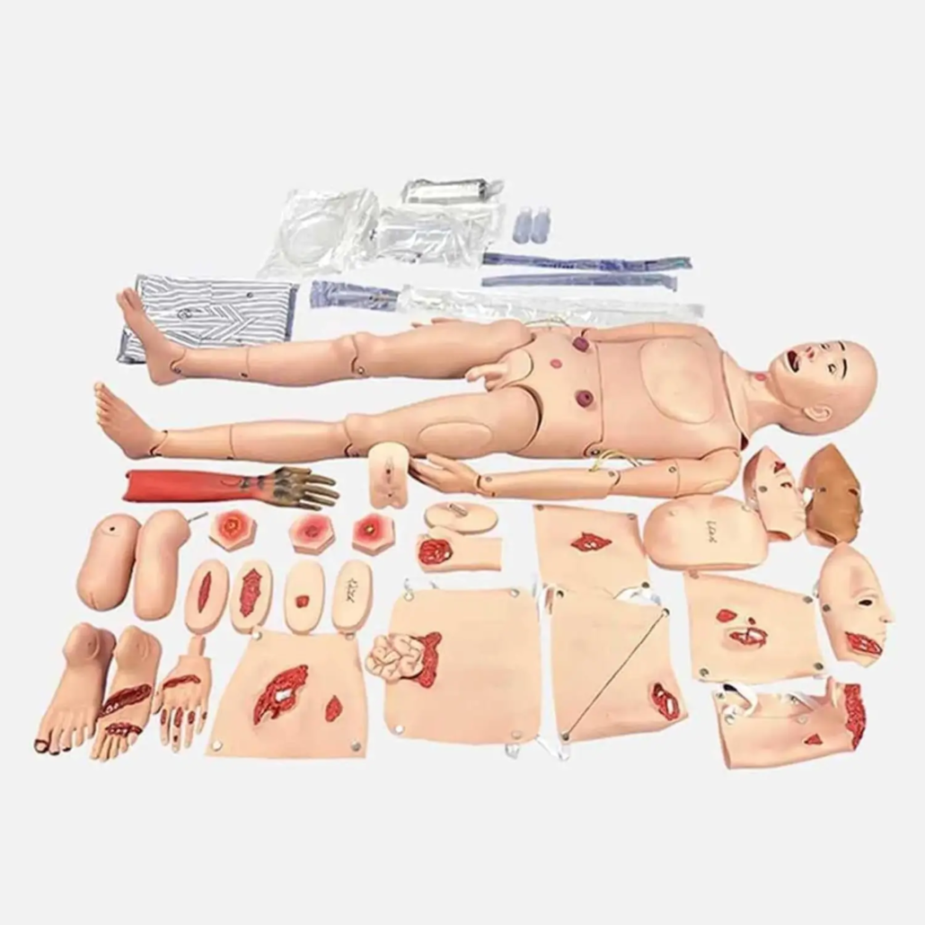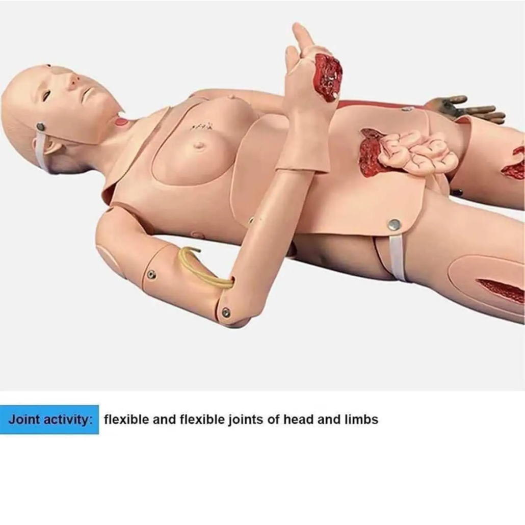 ¡Un simulador avanzado y multifuncional para entrenamiento integral en trauma, enfermería y primeros auxilios! Este maniquí de cuerpo completo (Full Body Nursing Manikin) está diseñado para ofrecer una imagen vívida y una operación realista, facilitando la práctica de una amplia gama de procedimientos de cuidado del paciente y manejo de lesiones traumáticas.