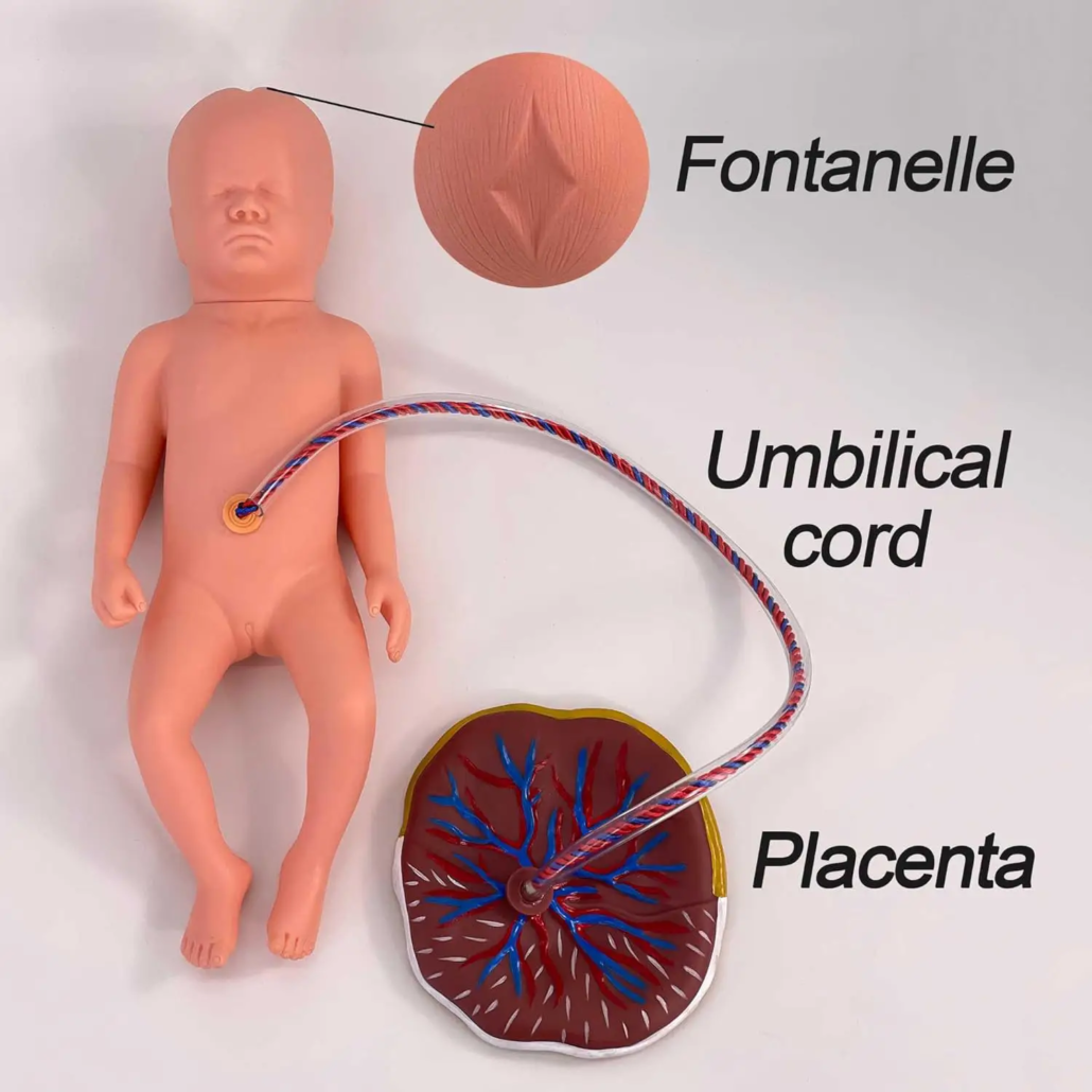 - Práctica de Parto y Extracción: Los modelos fetales, el cordón umbilical y la placenta pueden usarse para practicar la succión de la cabeza fetal.